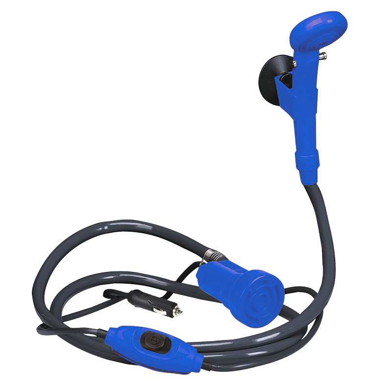Το Ηλεκτρικό Ντους 12V παρέχει πρακτική και άμεση παροχή νερού σε κάμπινγκ, τροχόσπιτο, σκάφος ή εξορμήσεις στη φύση. Αντλεί νερό ακόμη και από μικρά δοχεία και συνδέεται απευθείας σε οποιαδήποτε πρίζα 12V αυτοκινήτου ή σκάφους.