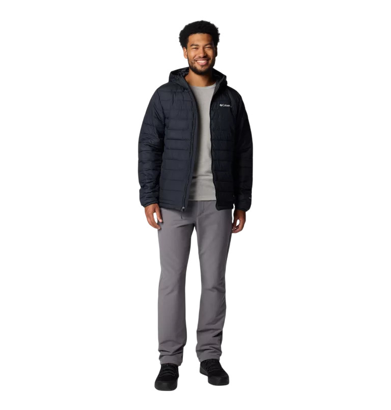 Columbia Powder Lite™ II Hooded Black – Ανδρικό Ορειβατικό Μπουφάν με Κουκούλα και Θερμοανακλαστική Επένδυση