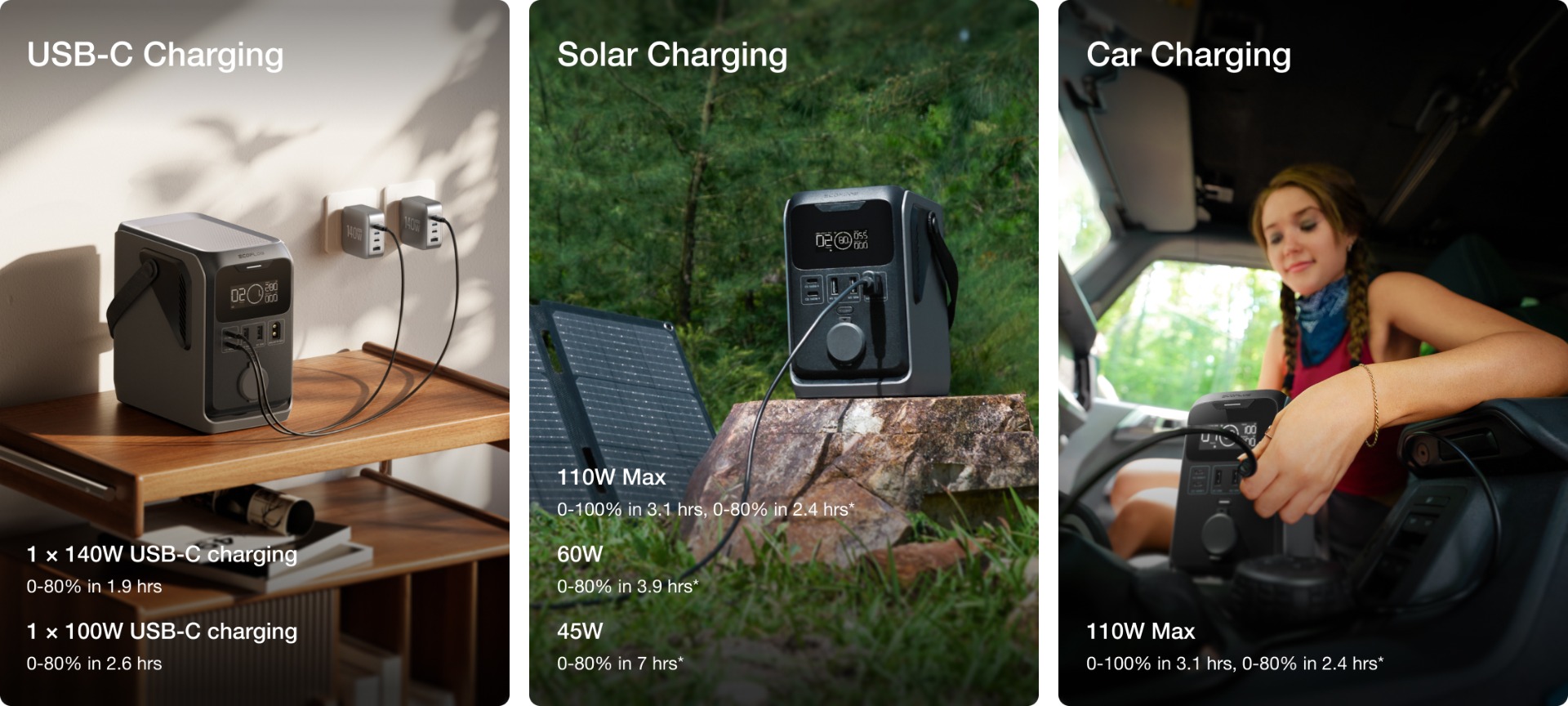 - Είσοδος ηλιακής φόρτισης: 110W, πλήρης φόρτιση σε 3 ώρεs
