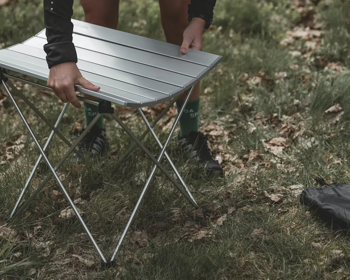 With a sturdy yet lightweight aluminium frame, a roll-top table surface, and a highly portable design, it offers quick setup, excellent stability, and reliable performance in the outdoors. Perfect for meals, food preparation, or board games in nature.