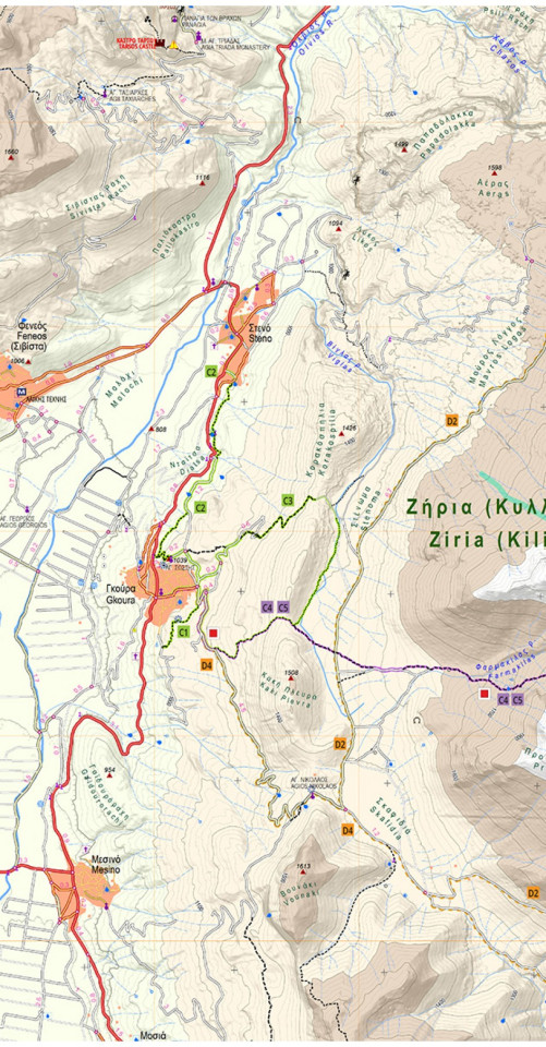 Χάρτης Ανάβαση Ζήρια (Κυλλήνη) - Ολίγυρτος - Λίμνη Δόξα 1:30.000