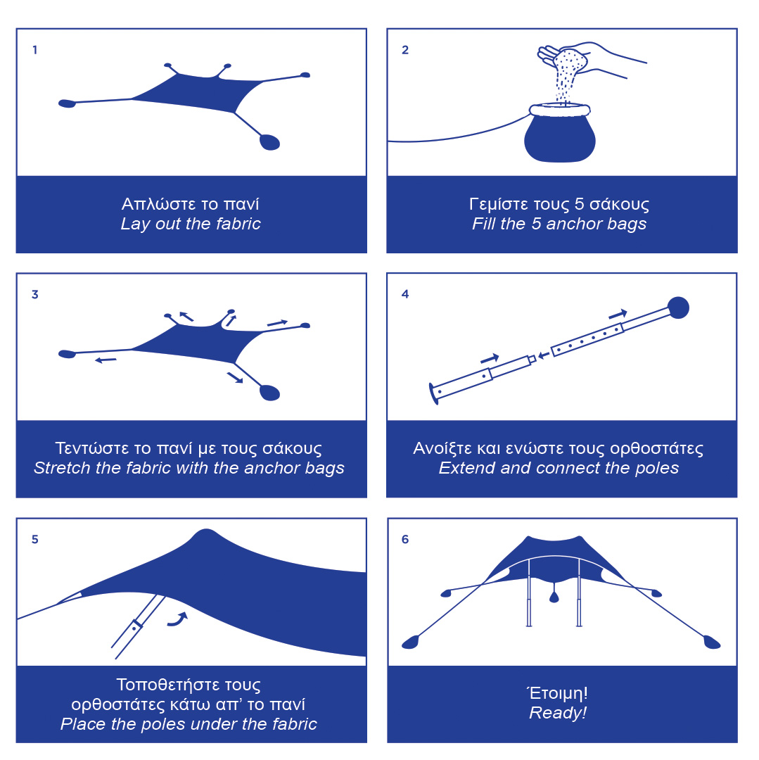 - Τεντώστε το πανί απομακρύνοντας τους σάκους.